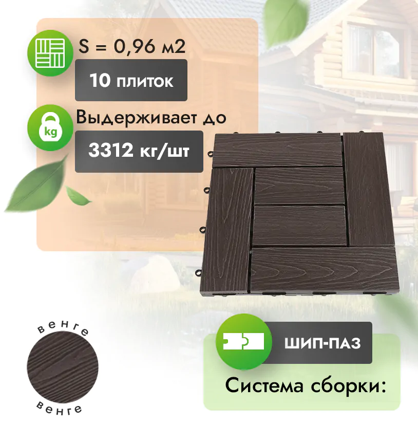 Современный садовый паркет из МПК – это лучший материал для облагораживания ландшафтов или придомовой территории. Он представляет собой модульные плитки из минерально-полимерного композита (МПК) с пластиковой подложкой и замковым креплением типа «шип-паз».
